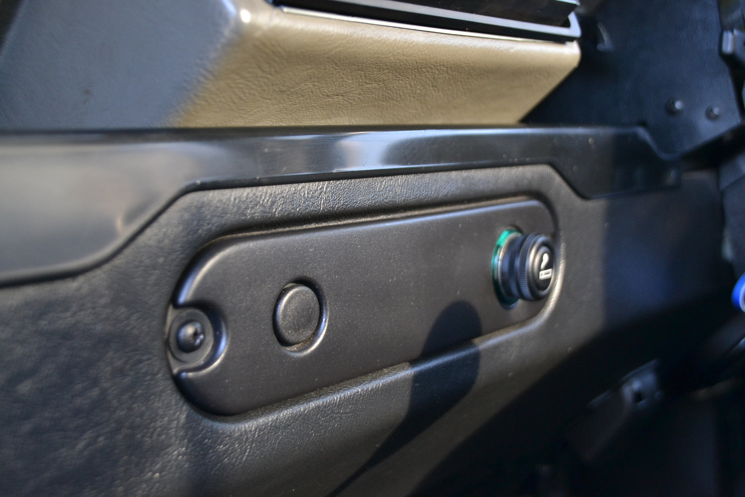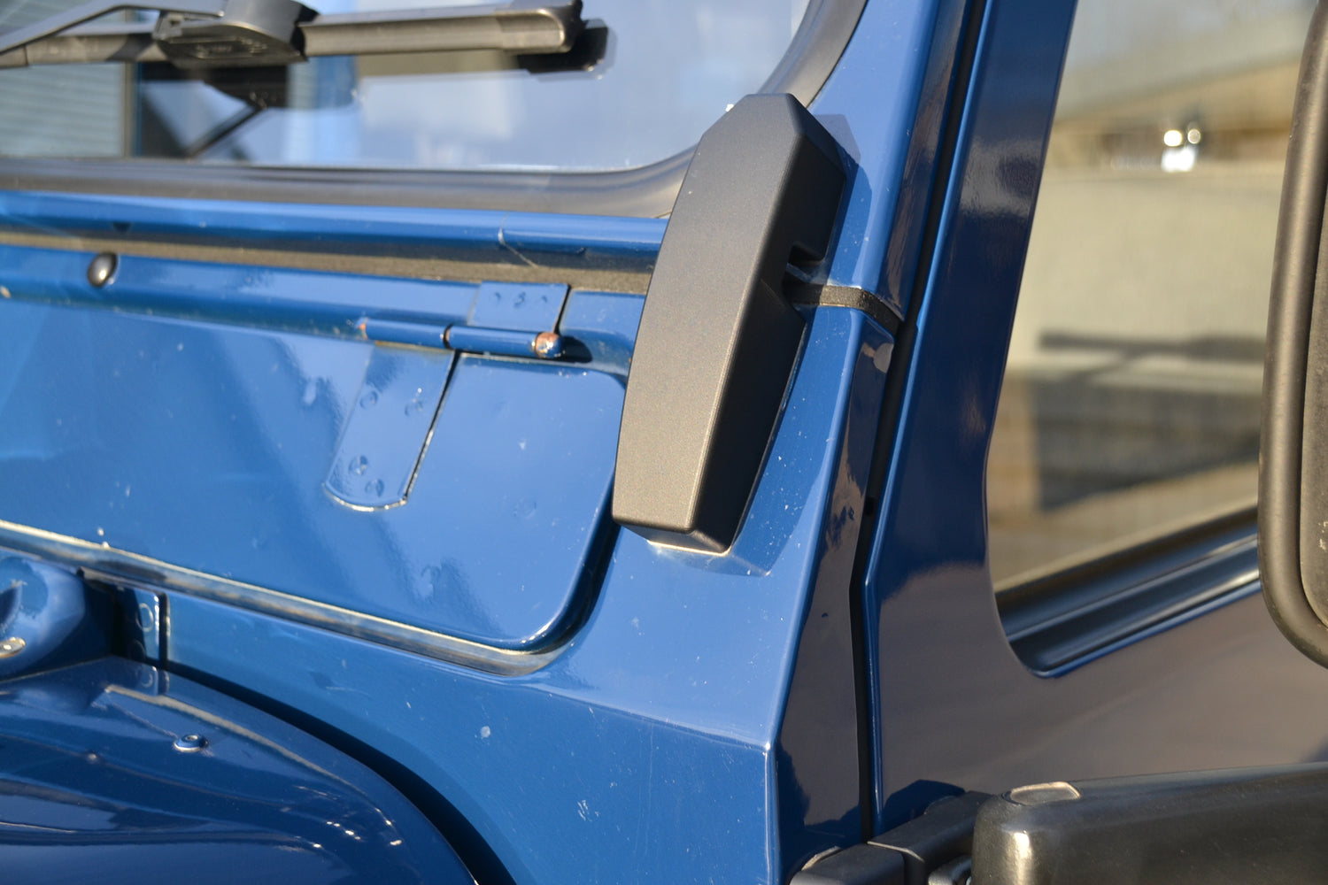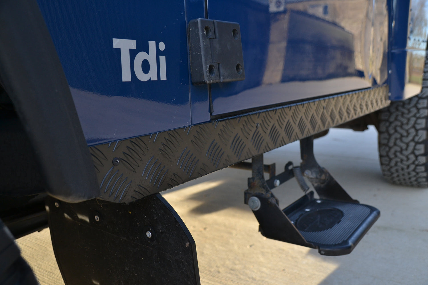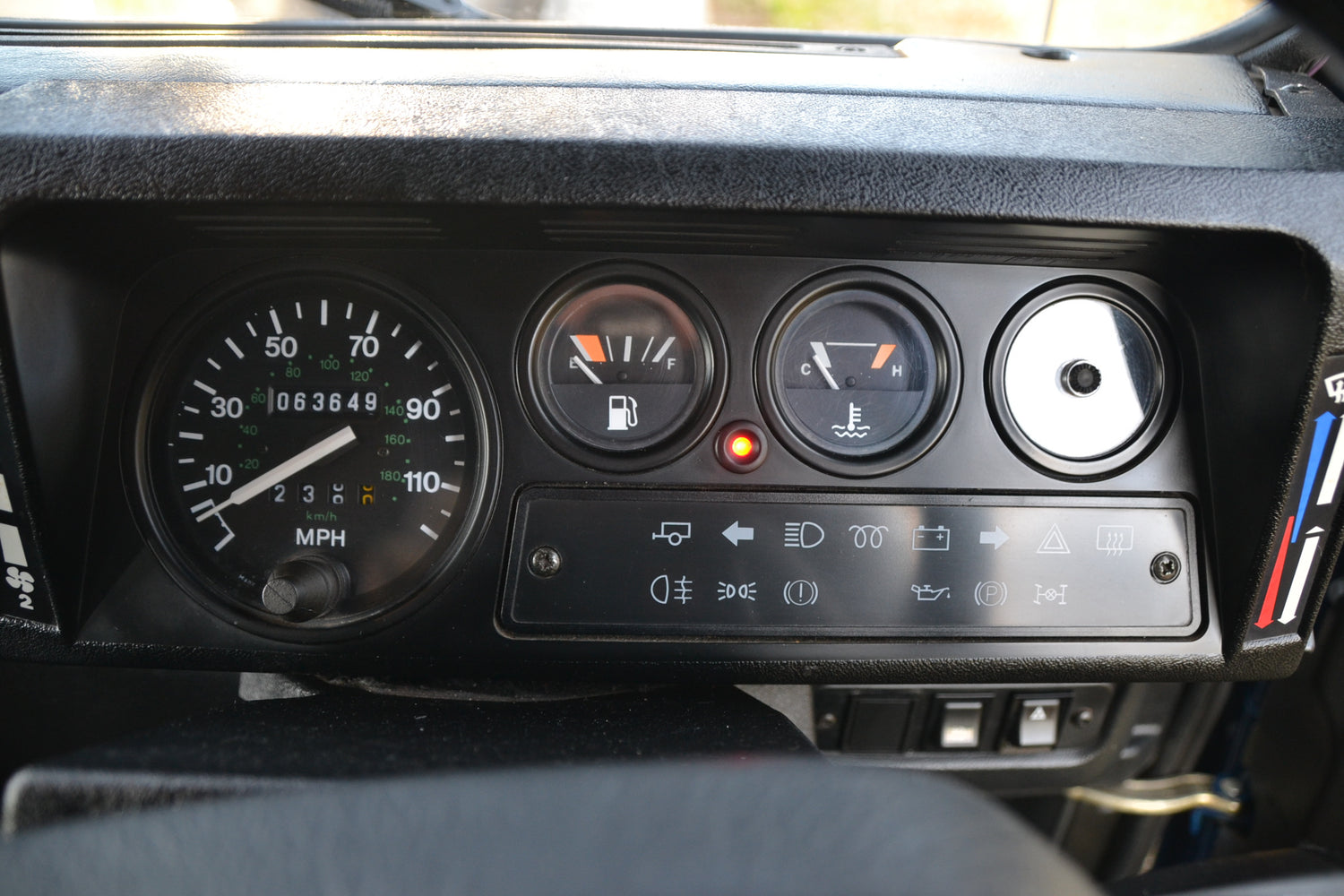 The interior of the cab has been kept neat and original with the exception of the headlining and cab trim. These have been professionally re-trimmed in a black fabric to match the interior if its owners RS4 at the time. The tunnel and seatbox trim was replaced with original Land Rover trim, neat and hard wearing and easily washed out. The original 3 front seats remain trimmed in Denim Twill Vinyl for that durable and hard wearing finish and keeps the interior easy to clean. They, like the rest of the interior, are in excellent condition. It has an Alpine BT head unit mounted in a factory fit housing playing through Harman Kardon speakers. OE Footwell mat set keep the factory look inside.