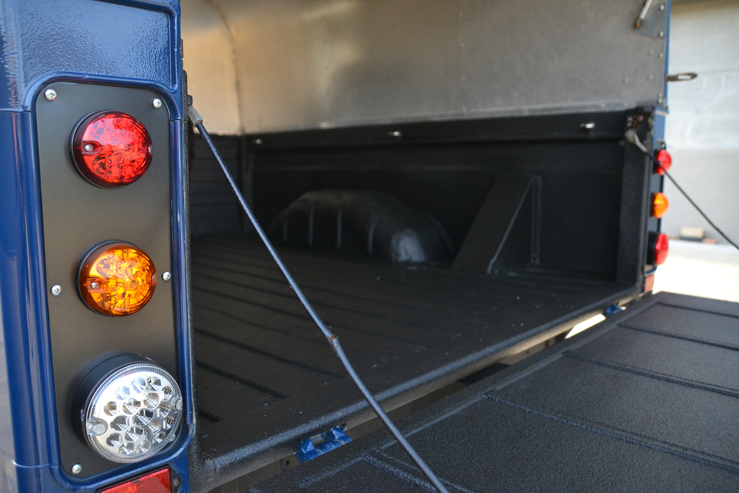 Still in its original Land Rover Caledonian Blue, the bodywork is near immaculate. A brand new Ifor Williams canopy was recently fitted and colour coded to match the vehicles original colour. Inside the pick-up bed it has been professionally coated in Linex. Linex is renowned for being one of the toughest and hard wearing coatings available and used worldwide. A matching spare wheel and tyre is securely mounted at the front of the pick-up bed.