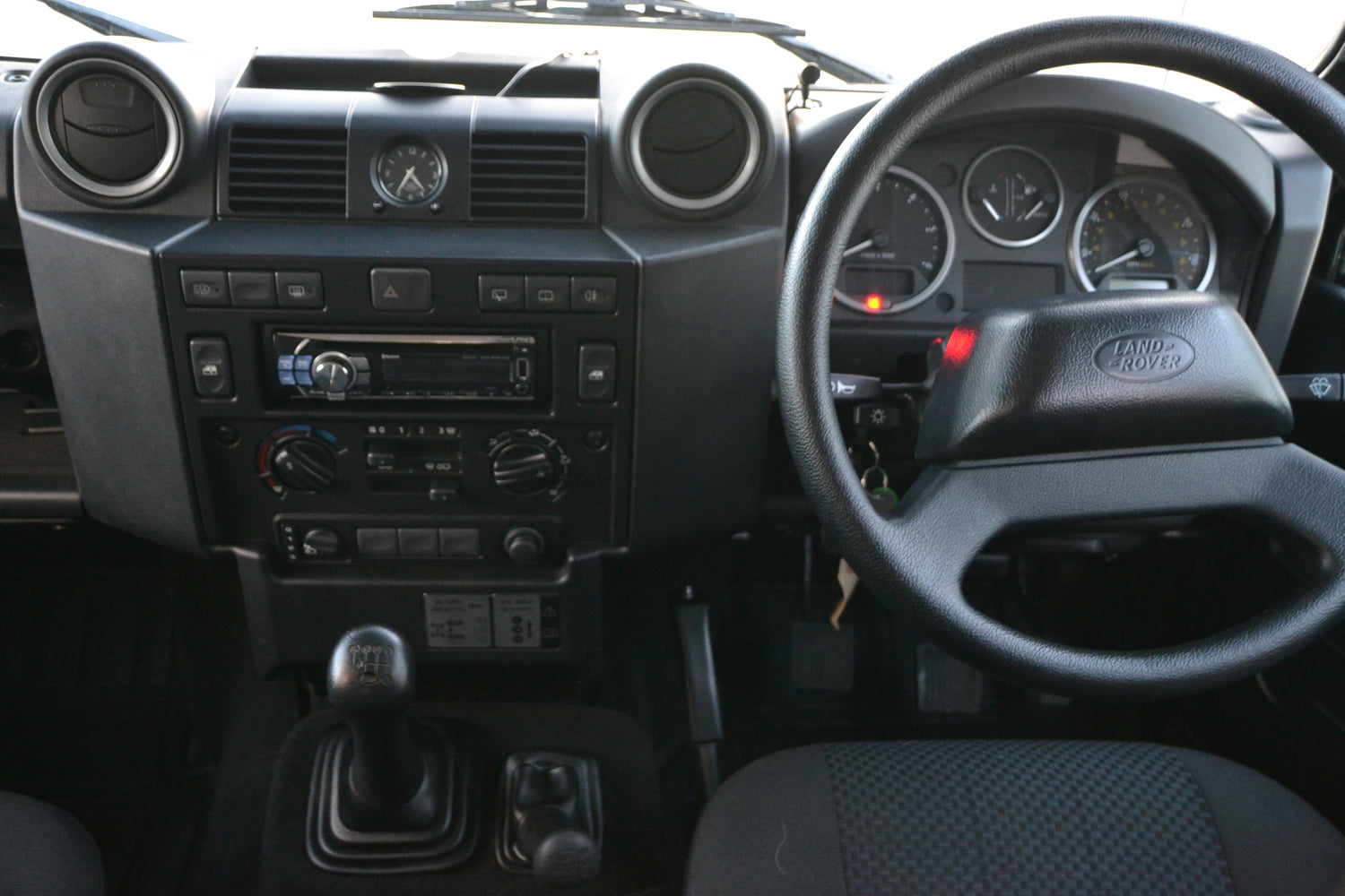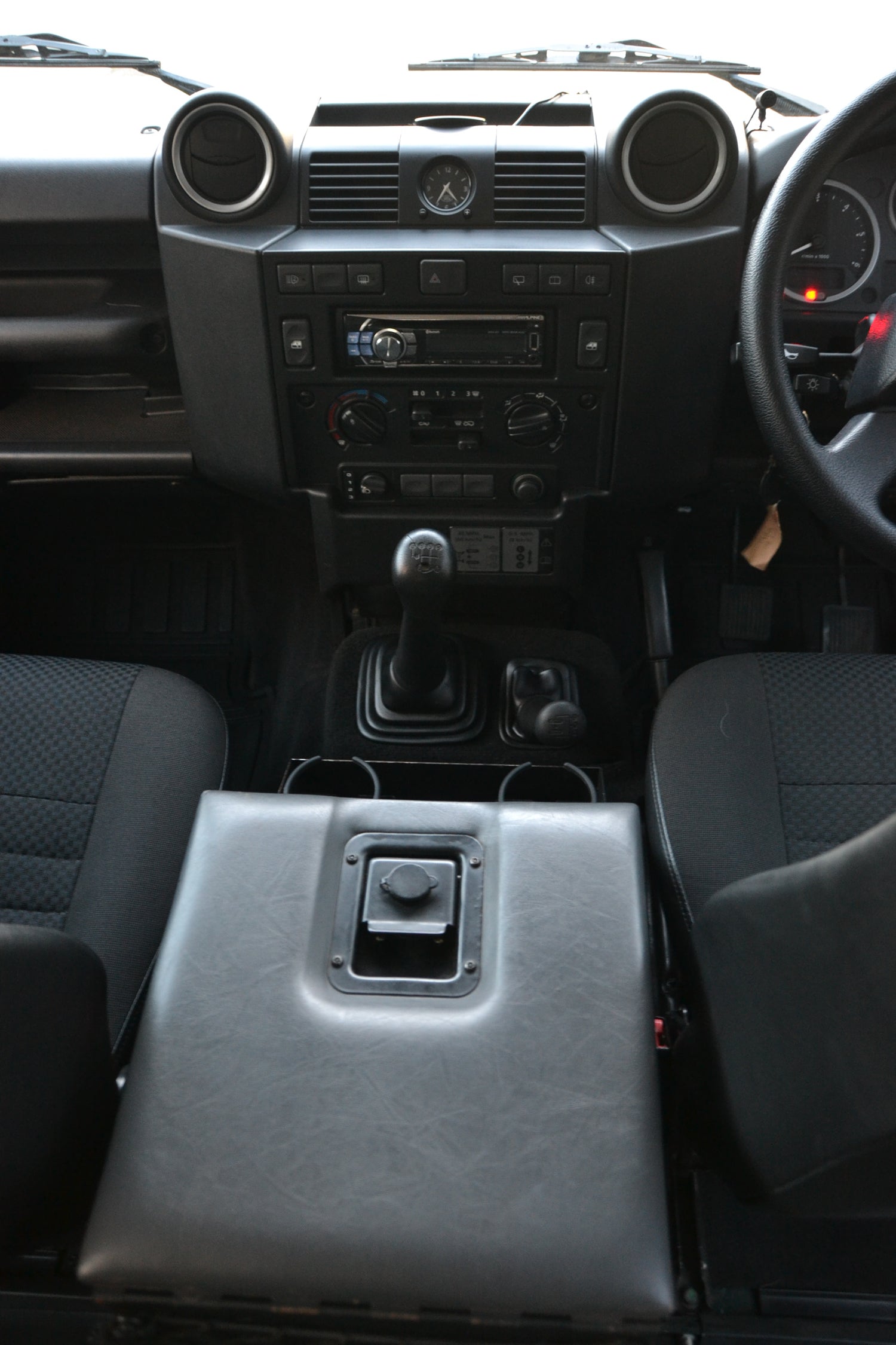 On the inside the car is equipped with Dark Granite cloth seating and factory carpeted throughout, protected by original Land Rover rubber matt set. Factory fitted Alpine CD Radio with BT. Factory Central Locking and Electric front windows