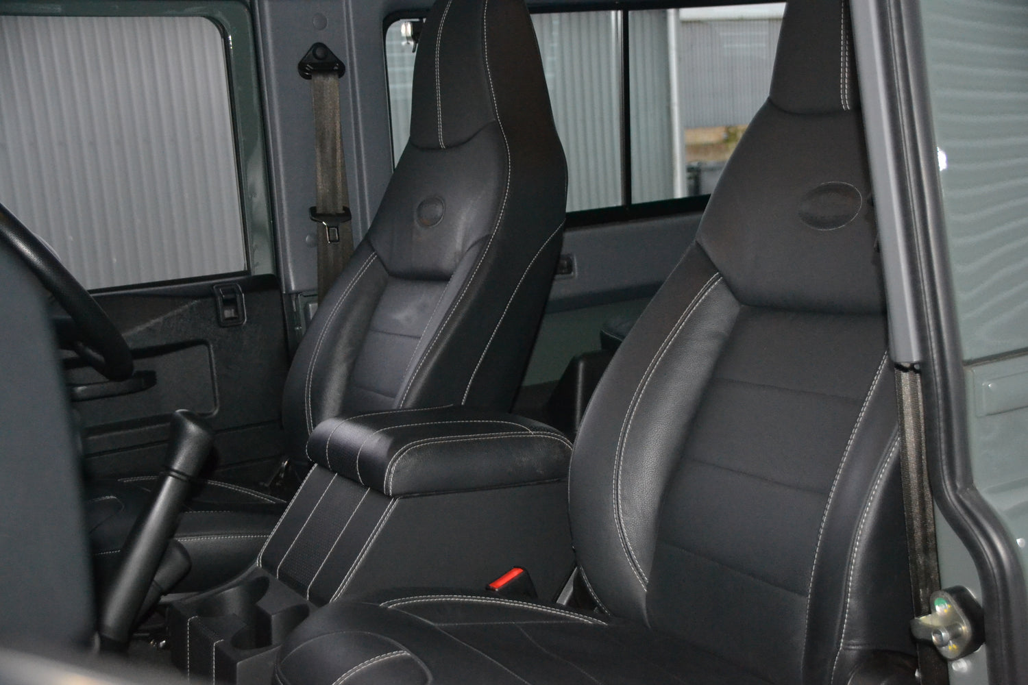 Land Rover Defender 90 Station Wagon XS: This immaculate example of the last generation of the old Defender is presented in iconic Keswick Green in near perfect condition. As a factory XS model Station Wagon, standard features include: Heated front and rear screens, Heated front seats, Central locking and Electric windows, premium Alpine CD Radio with BT, XS side steps, Brunel grey grille and headlamp surrounds with white lights. As a 2015MY Defender XS it also has ABS T/C with T/C override (only available on 2015MY Defenders… Factory specified options include Premium leather seats upgrade to front and rear in black with contrast white stitching, Full carpet set as factory optional upgrade, Full set of OE rubber foot well matts and rear floor matt, Tow pack… Additionally this stunning vehicle has been treated to a full chassis wax-oil from new, a full stainless steel bolt set to all hinges and rear body mountings and a premium centre console trimmed in matching black leather with contrast white stitching, a lovely addition paired with the premium leather seats.